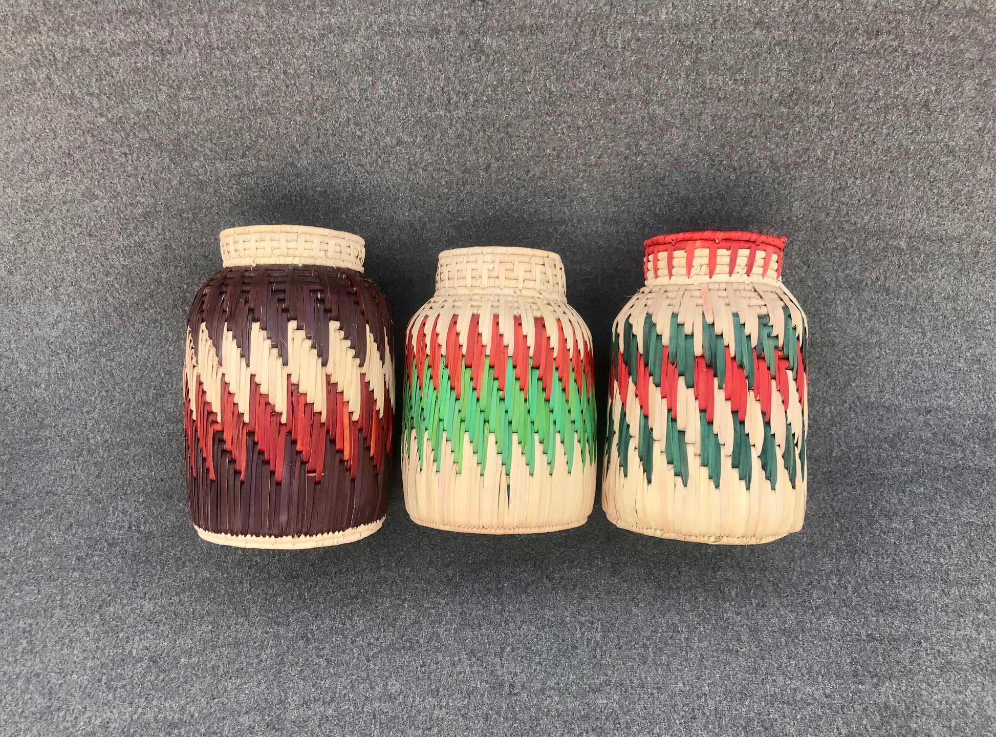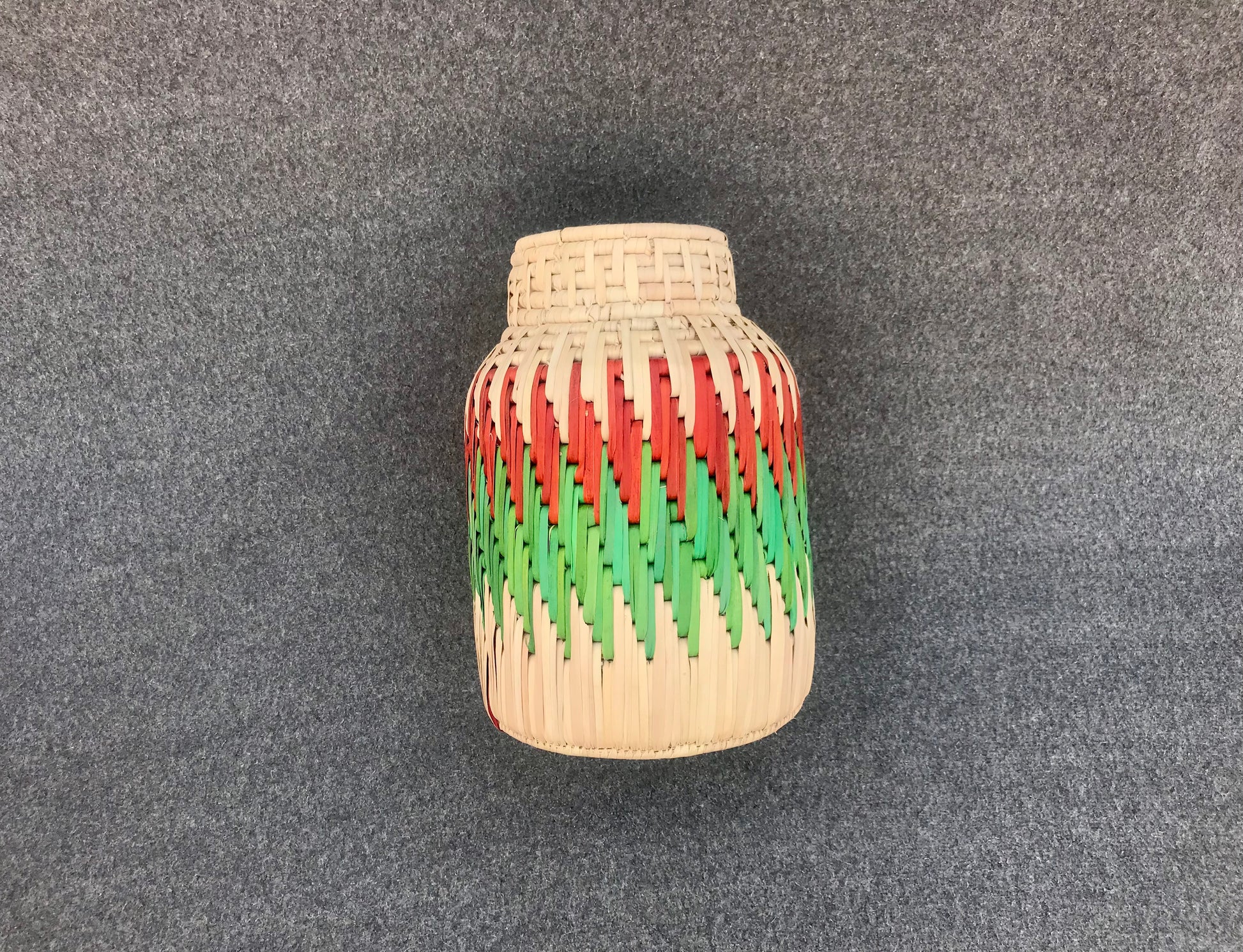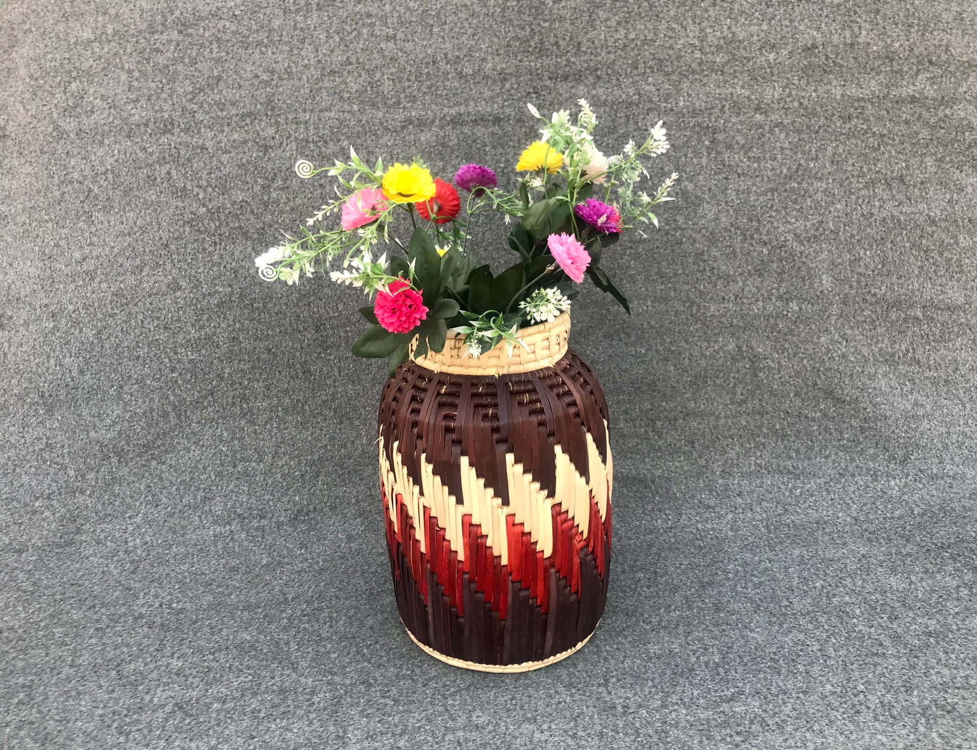 Date Palm Leaf Handmade Multicolor Floral Flower Vase | 12x8 Inch Premium Craft | Snacks & Dry Fruits Jar – Cultural Dukaan