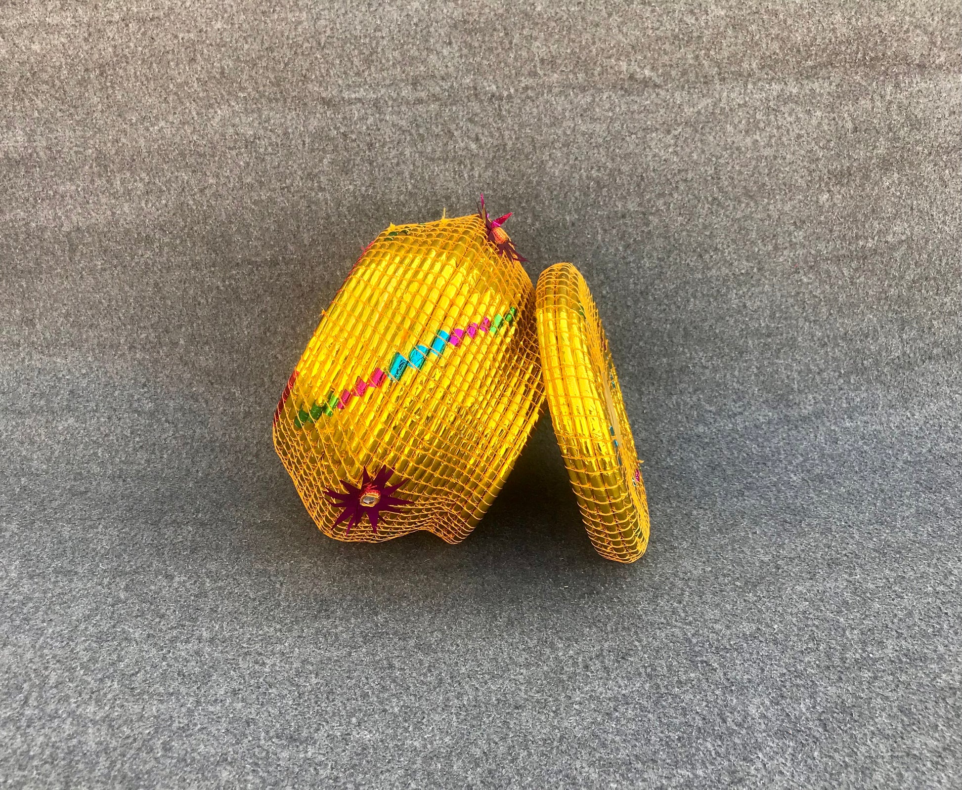 Handmade Hotpot For Roti - Made from Natural Grass & Chamkeli Patti Hand Woven Bread Box | Bread/Chapati/Naan Warmer | Traditional Hotpot | Soondhri For Kitchen - Dry Fruits Storage Basket For Home
